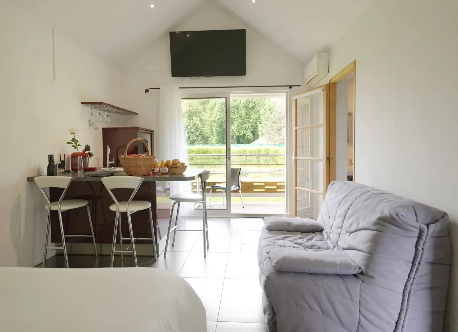 Wil je graag een plekje relatief dicht bij de start met wat meer luxe? Kijk dan vooral naar de appartementen van Hostellerie des Sources. De gastvrouwen hebben prachtige appartementjes gecreëerd aan een mooi meertje, waar je lekker op je balkon kan bijkomen van de trainingsritten en de Gran Fondo. 3 van de 5 appartementen hebben een eigen jacuzzi + sauna!