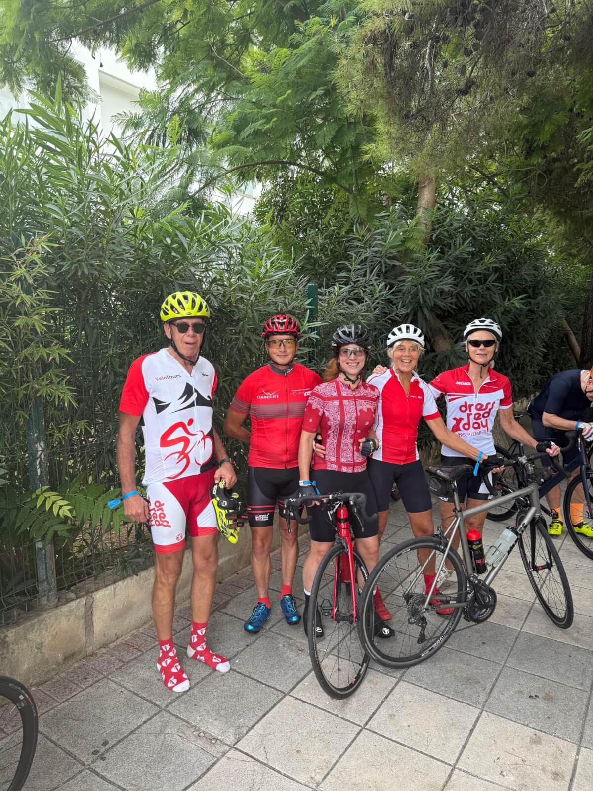 We fietsen dagelijks afstanden van 50-100 km in twee verschillende niveaugroepen. We wachten altijd bij klimmetjes op elkaar en voorzien zoveel mogelijk deelnemers van de route (GPX). Elke racefietsgroep wordt begeleid door een ervaren fietser/begeleider. Gravel en wandelen is in groepsverband, maar op eigen gelegenheid. Er is uiteraard technische assistentie aanwezig en de nodige materialen (Reservebanden, hoge drukpomp, wat materialen e.d.). Een helm dragen is verplicht tijdens de fietstochten. Je neemt (omdat we over openbare wegen fietsen) deel op eigen risico. Sportieve gezelligheid en veiligheid staan voorop!